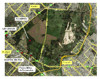 En el área 470 que correspondía a lo que hasta 1994 se conoció como General Sarmiento y hoy equivale a San Miguel, Malvinas Argentinas y José C. Paz se asentaba la guarnición de Campo de Mayo, una enorme franja militar de 5000 mil hectáreas. Desde 1976 hasta 1980, funcionaron allí cuatro centros clandestinos de detención tortura y muerte: El Campito o Los Tordos, Las Casitas o La Casita, el Hospital Militar y la Prisión de Encausados.