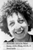 El 12 de junio del ‘76 la secuestraron a mi tía, Leticia Mabel Akselman de 18 años. Ella militaba en la Unión de Estudiantes Secundarios (U.E.S.) en la Villa 31 de Retiro. En la mañana de ese día iba a la casa de una amiga que vivía en Lomas de Zamora a una reunión y el Ejército la interceptó en la mitad del trayecto. Estuvo detenida en el "Vesubio" y después la trasladaron a Campo de Mayo. A los dos días de su secuestro le allanaron la casa a mi abuela, robaron todo y quemaron algunos libros. Unos días después volvieron. Ella no estaba en ese momento. La esperaron todo el día hasta que finalmente se fueron.