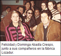 Felicidad y Dominga Abadía Crespo, junto a sus compañeros en la fábrica Lozadur.Las hermanas Dominga y Felicidad Abadía Crespo tenían en común con Juan Carlos Panizza la misma vocación de lucha y el mismo gremio. Trabajaban en dos fábricas ceramistas de Villa Adelina, ellas en Lozadur, y él en Cattaneo. Hoy se cumplen 32 años de la desaparición de las jóvenes; el 27 de octubre se cumplió el mismo aniversario del secuestro de Cumpa o Cumpita, como lo llamaban sus compañeros. Sus casos son apenas tres entre un número indeterminado de obreros y obreras que la dictadura militar arrancó de sus casas y trabajos aquellas noches de 1977. Sus familiares acaban de presentar una querella junto a la hermana de Salvador Miguel Scarpato y el viudo y la hija de Sofía Tomasa Cardozo, otros desaparecidos que pertenecían al sindicato. Todos sospechan que se los llevaron grupos de tareas de la Escuela de Comunicaciones del Comando de Institutos Militares, con sede en Campo de Mayo, según se desprende de documentos desclasificados de la Embajada de Estados Unidos. Los ceramistas, en un puñado de días de aquella trágica primavera, robustecieron el 30,2 por ciento de las desapariciones que tuvo el proletariado industrial en aquella etapa.